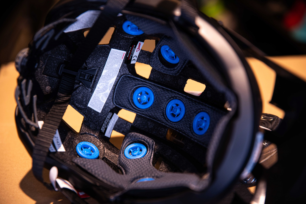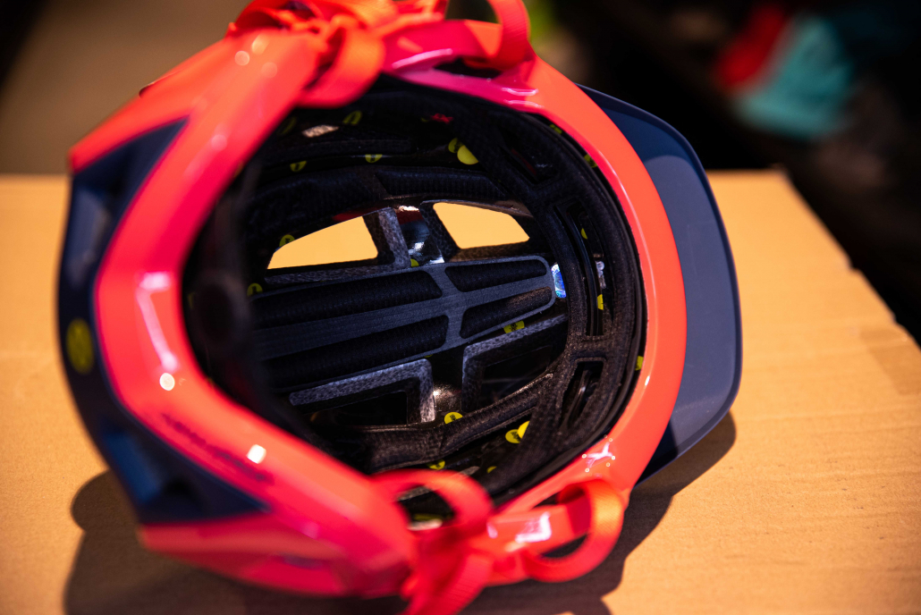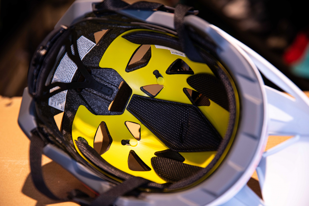 En lugar de disponer una parte de plástico que absorve el impacto como es el caso del sistema Mips “convencional”. El Mips rotacional queda integrado en la propia espuma del casco, siendo toda la espuma la que rota en caso de caída.