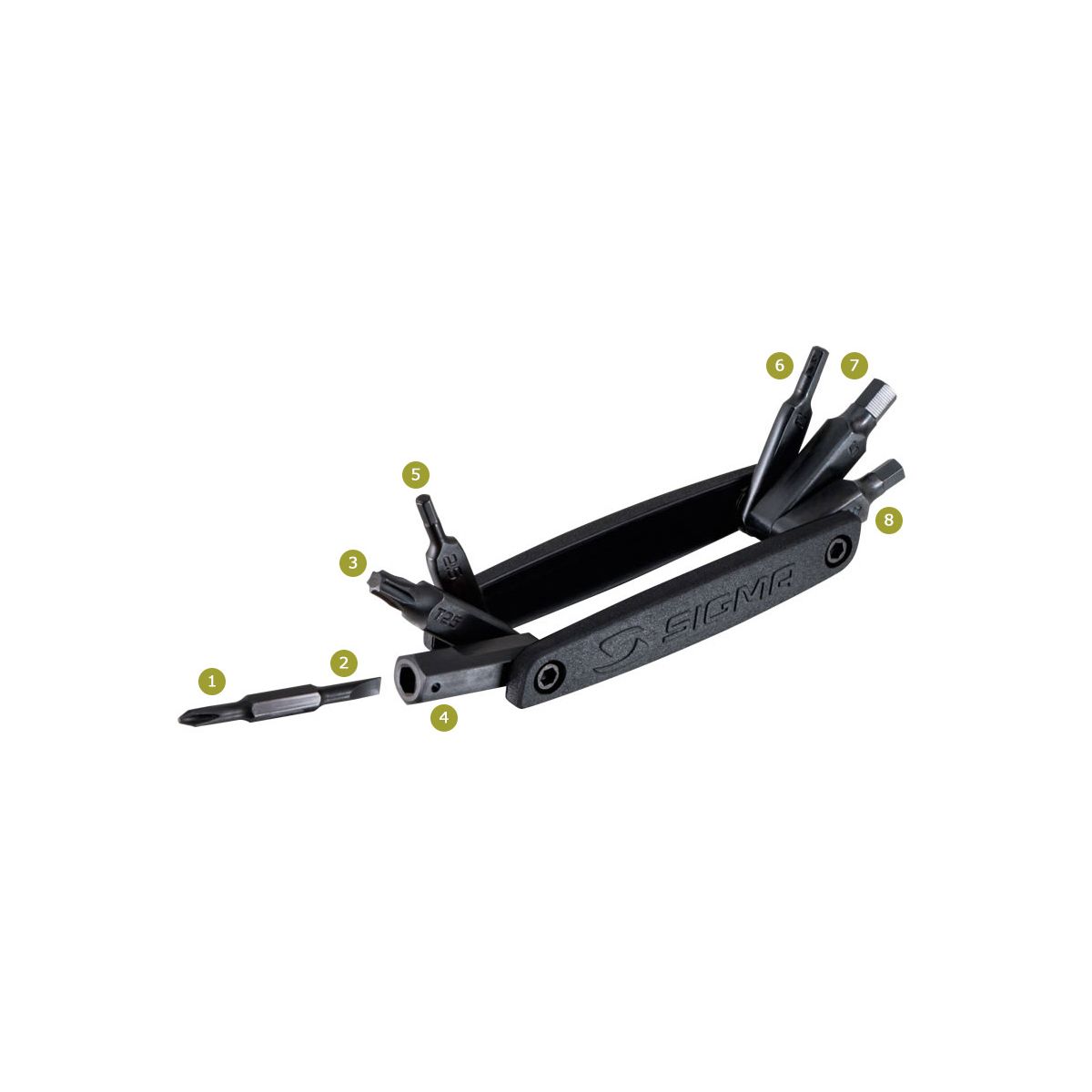 Ligera, resistente y funcional, la Pocket Tool Small de Sigma es la aliada perfecta para tus rutas en bicicleta. Con un peso de solo 76 g y un diseño ultracompacto, te proporciona todas las herramientas esenciales para ajustes rápidos, ocupando el mínimo espacio en tu equipaje. Sus costados engomados garantizan un agarre seguro incluso con manos sudorosas o guantes.