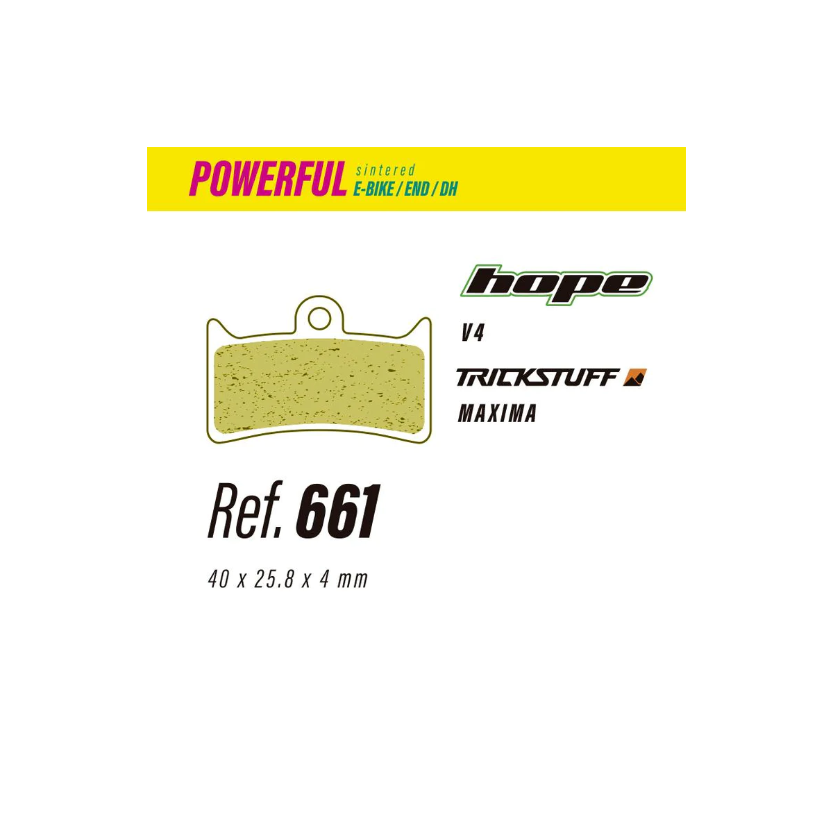 Pastillas de freno LESS BRAKES POWERFUL para frenos Hope Tech V4, diseñadas para un rendimiento agresivo en disciplinas como Downhill, Enduro y E-Bikes.