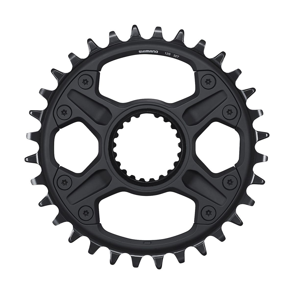 Plato Shimano Deore para bielas M6100 / M6120 y M6130 con anclaje especial para bielas Shimano de 12 velocidades. De 32 y 34 dientes.