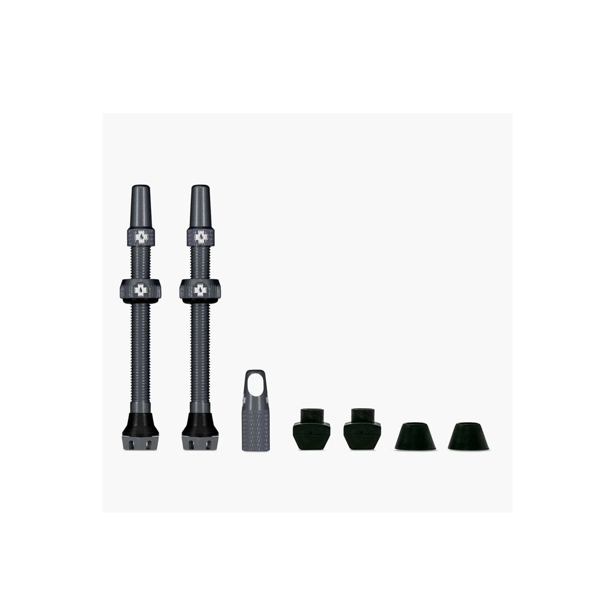 Juego de válvulas de bicicleta Muc-Off V2 para tubeless con longitud de 44mm en color Oil Slick arcoiris, naranja, negro, verde, azul, rojo, dorado, plata y rosa.