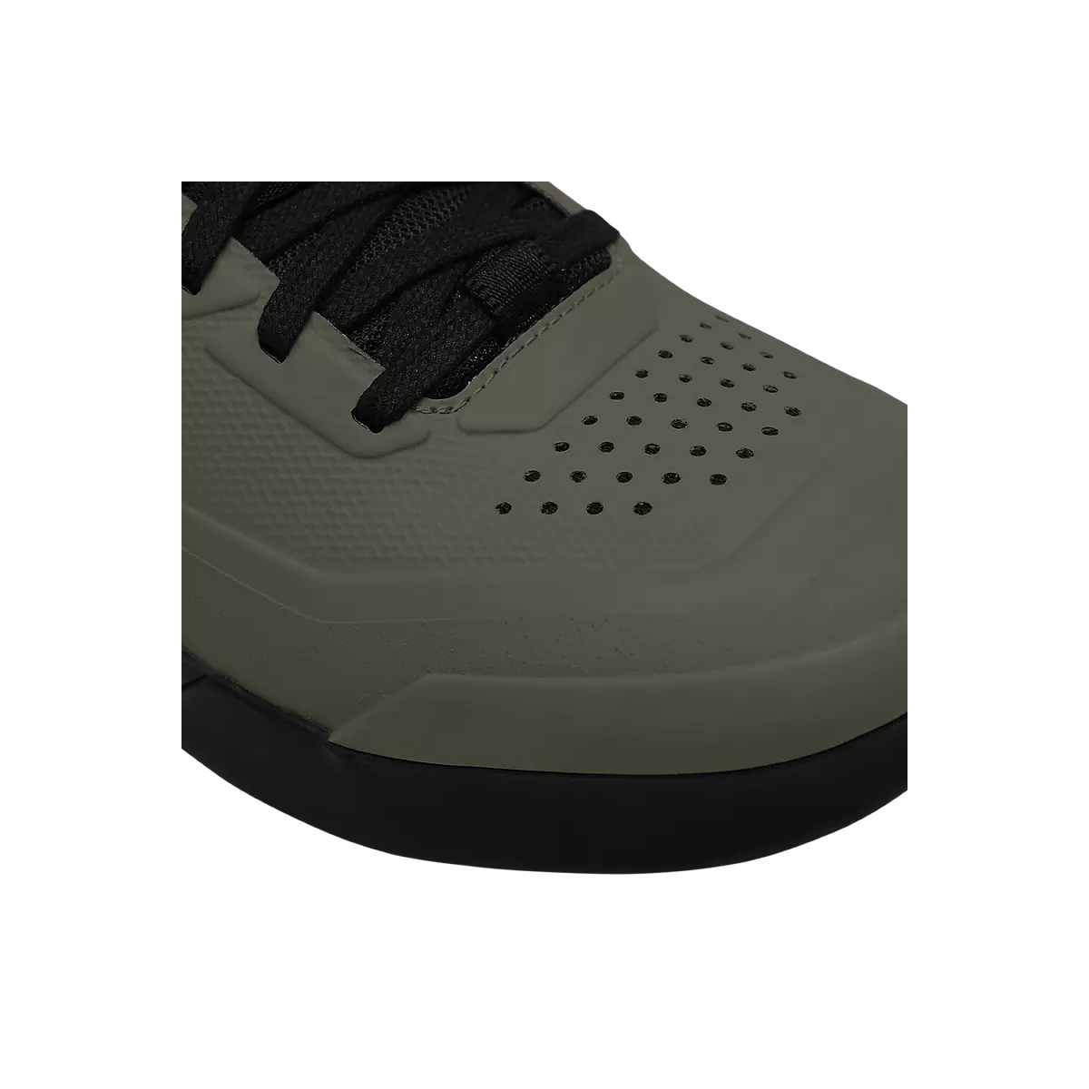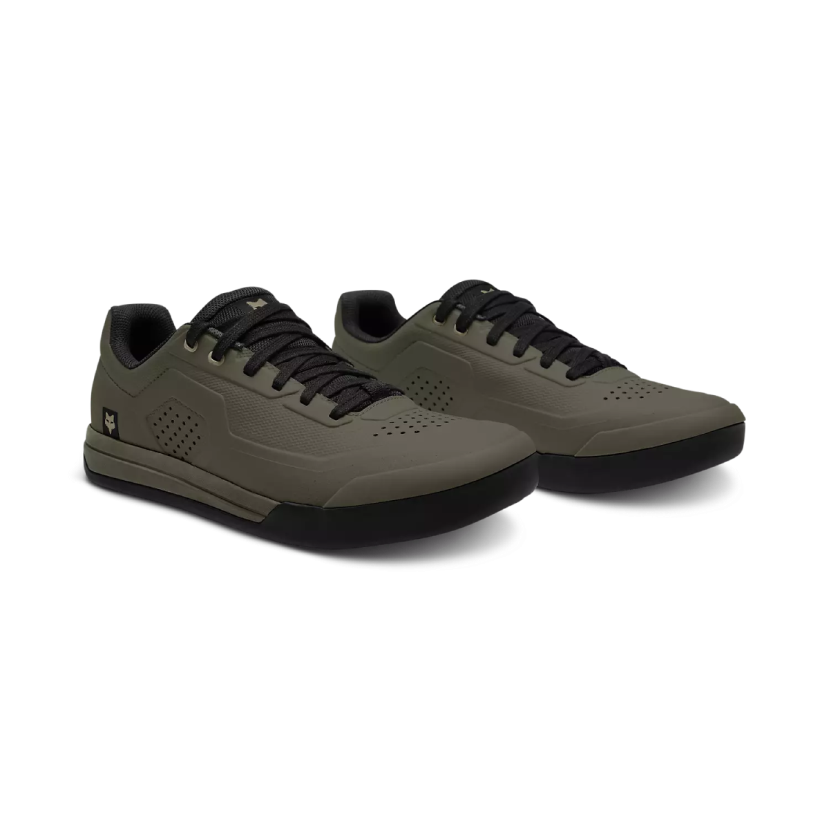 Zapatillas para pedal de plataforma de mtb Enduro, ebike o all mountain Fox Union en gris y verde con cierre de cordones y suela super blanda "Ultrac" de máximo agarre.